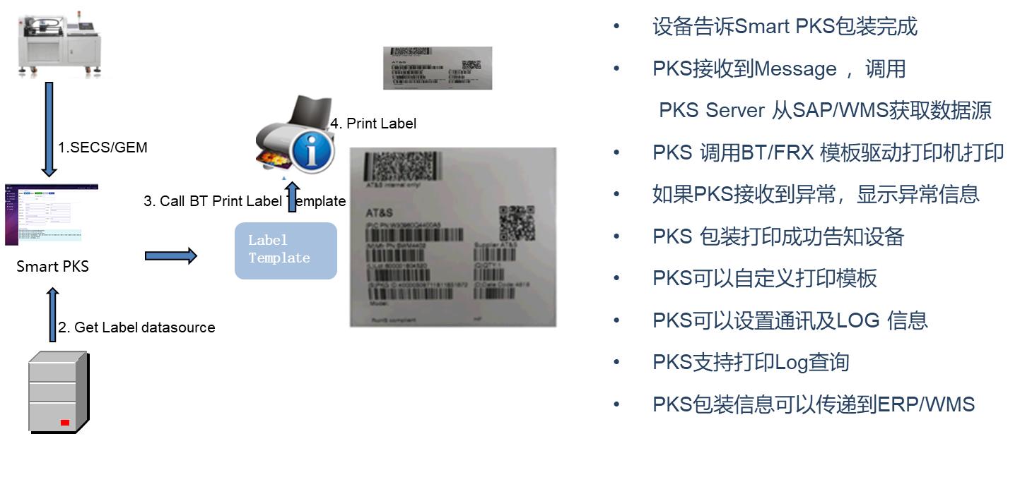 通過SECS GEM等協議與包裝設備集成完成自動打包以及標簽自動打印