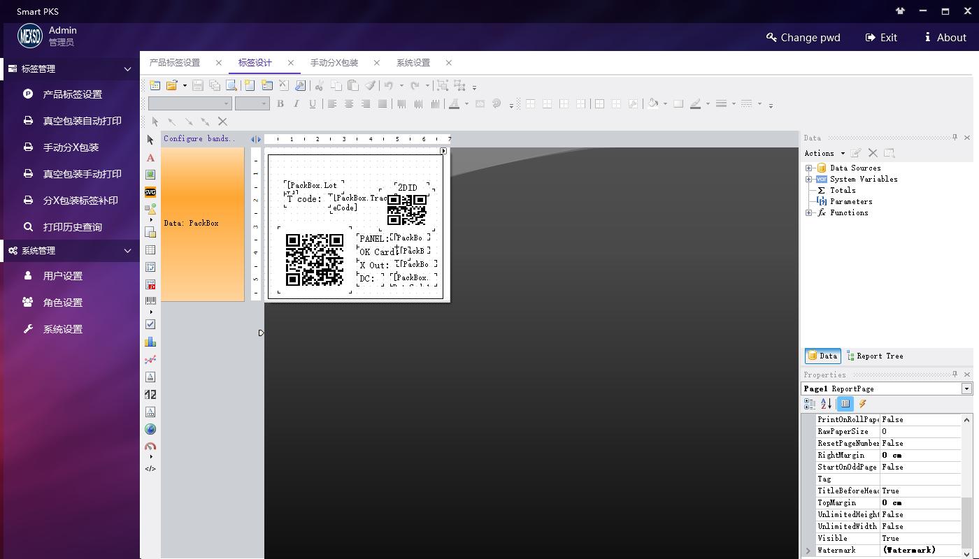 MEXSD PKS是麥斯達研發的包裝打印標簽系統,可以支持標簽模板設計,數據源動態綁定,與設備集成完成自動包裝打印標簽功能