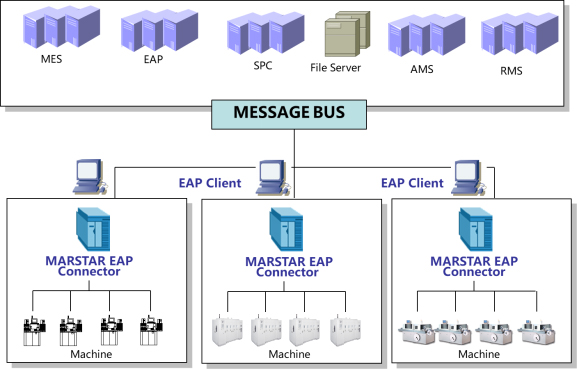 EAP(Equipment Automation Program)設(shè)備自動(dòng)化系統(tǒng),主要是針對SEMI-CONDUCTOR行業(yè)對生產(chǎn)自動(dòng)化的需求,主要通過SECS/GEM協(xié)議,支持半導(dǎo)體E30,E5等標(biāo)準(zhǔn),能夠?qū)崟r(shí)的與半導(dǎo)體設(shè)備進(jìn)行通訊,主要功能包括與設(shè)備通訊完成配方的自動(dòng)上傳下載檢查、設(shè)備數(shù)據(jù)自動(dòng)采集、設(shè)備關(guān)鍵事件和設(shè)備警報(bào)的收集等功能以及與上層系統(tǒng)如MES、RMS、SPC等實(shí)現(xiàn)信息交互的系統(tǒng)集成解決方案。